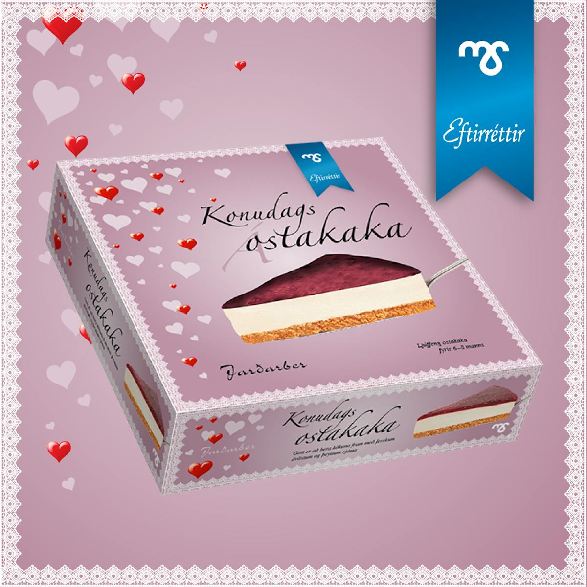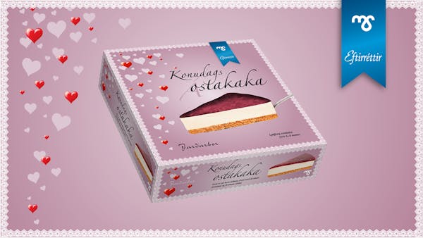 Konudagsostakakan er komin í verslanir en þessi dásamlega kaka fæst í takmarkaðan tíma svo þú vilt ekki missa af henni. Ostakakan er með bragðgóðri jarðarberjaþekju og einstaklega ljúffeng og ekki skemmir fyrir að bera hana fram með þeyttum rjóma. Fullkomin kaka til að njóta á Valentínusardaginn, á konudaginn eða bara hvenær sem er.