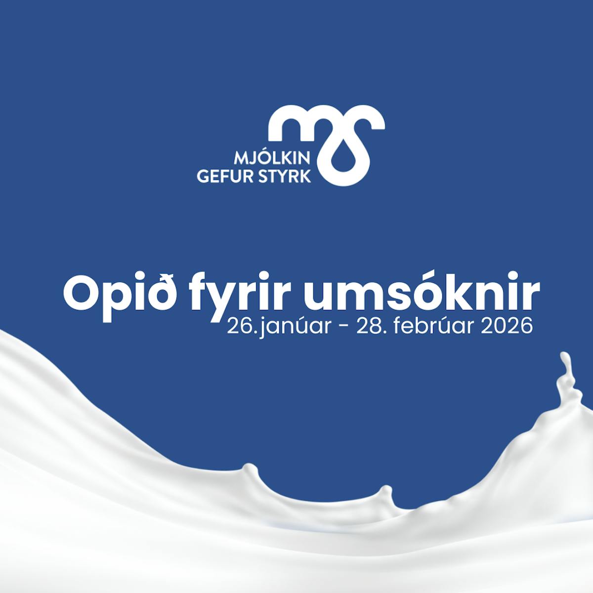 Nú höfum við opnað fyrir umsóknir í styrktarsjóð Mjólkursamsölunnar Mjólkin gefur styrk fyrir árið 2026. Markmið sjóðsins er að veita íþróttafólki fjárstyrki vegna æfinga og/eða keppni og styðja þannig við bakið á þeim og auðvelda þeim að stunda íþrótt sína. Í þessari annarri úthlutun úr sjóðnum verður 2,5 milljónum króna úthlutað til allt að 10 einstaklinga 18 ára og eldri og fær hver styrkþegi 250.000 kr. í sinn hlut.