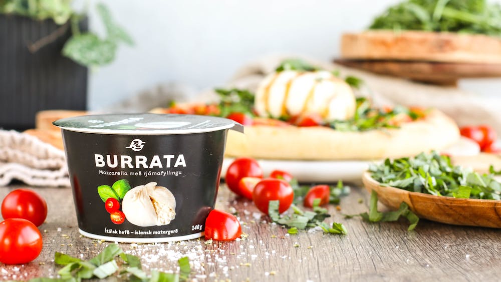 Burrata hefur verið einn vinsælasti ostur á veitingahúsum landsins síðustu misseri og öðru hverju hefur þessi dásamlegi ostur fengist í verslunum. Frá því framleiðsla á íslenskum burrata hófst fyrir nokkrum árum síðan hefur eftirspurnin verið mun meiri en framleiðslugeta og því hafa færri fengið að njóta en við hefðum kosið. Burrata ostur er fersk mozzarellakúla fyllt með mildri rjómaostafyllingu og er óhætt að segja að hver einasta kúla sé sannkallað listaverk. Mikil vinna fylgir framleiðslu á þessum dásamlega osti sem hefur gert það að verkum að ekki hefur verið hægt að anna eftirspurn.