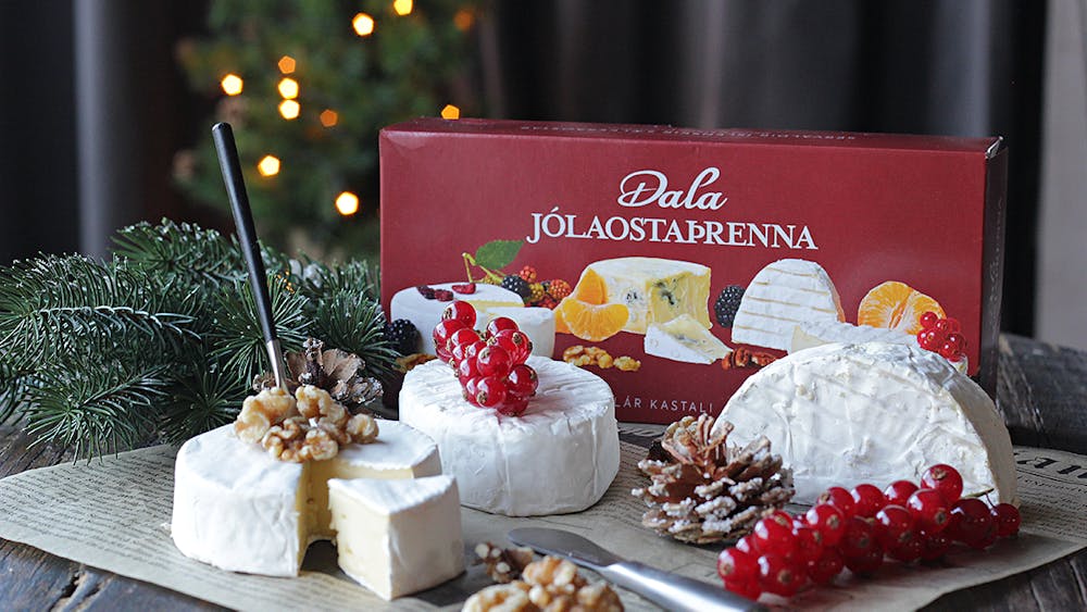 Nú er þessi bragðgóða ostaþrenna komin aftur á markað! Jólaostaþrenna úr Dölunum er skemmtileg viðbót á veisluborðið í aðdraganda hátíðanna, á aðventunni eða bara til að narta í yfir uppáhalds jólamyndinni. Dala Brie, Dala Höfðingi og Blár Dala Kastali eru hér saman í handhægri og fallegri öskju sem hentar líka fullkomlega sem gjöf til vina eða vandamanna í aðdraganda jólanna.