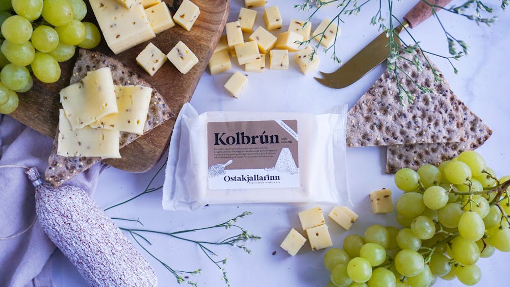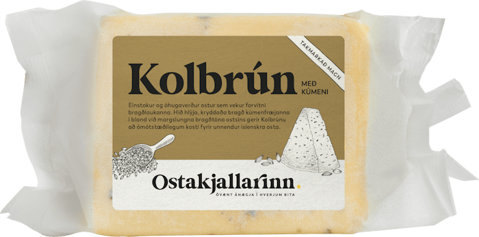 Kolbrún með kúmeni er nýjasti meðlimur Ostakjallara fjölskyldunnar en hér er á ferðinni einstakur og áhugaverður ostur sem vekur forvitni bragðlaukanna. Hið hlýja, kryddaða bragð kúmenfræjanna í bland við margslungna bragðtóna ostsins gerir Kolbrúnu að ómótstæðilegum kosti fyrir unnendur íslenskra osta.