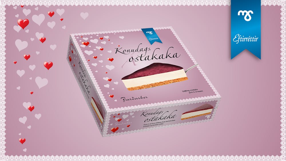 Konudagsostakakan er komin í verslanir en þessi dásamlega kaka fæst í takmarkaðan tíma svo þú vilt ekki missa af henni. Ostakakan er með bragðgóðri jarðarberjaþekju og einstaklega ljúffeng og ekki skemmir fyrir að bera hana fram með þeyttum rjóma. Fullkomin kaka til að njóta á Valentínusardaginn, á konudaginn eða bara hvenær sem er.