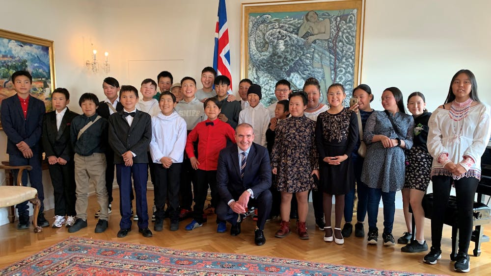 Guðni Th. Jóhannesson og grænlensku börnin.