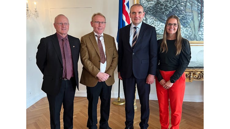 Skúli Pálsson og Stefán Herbertsson, stjórnarmenn í Kalak, Gréta Björg Jakobsdóttir, fulltrúi Mjólkursamsölunnar og forseti Íslands.