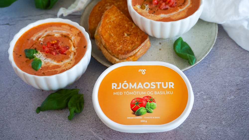 Rjómaostar eru í miklu uppáhaldi hjá stórum hópi landsmanna, hvort sem er í matargerð, á beyglur og brauð nú eða á ostabakkann. Það munu því eflaust margir gleðjast í næstu búðarferð því í tilefni Ostóber er kominn á markað nýr bragðbættur rjómaostur frá MS með tómötum og basilíku.