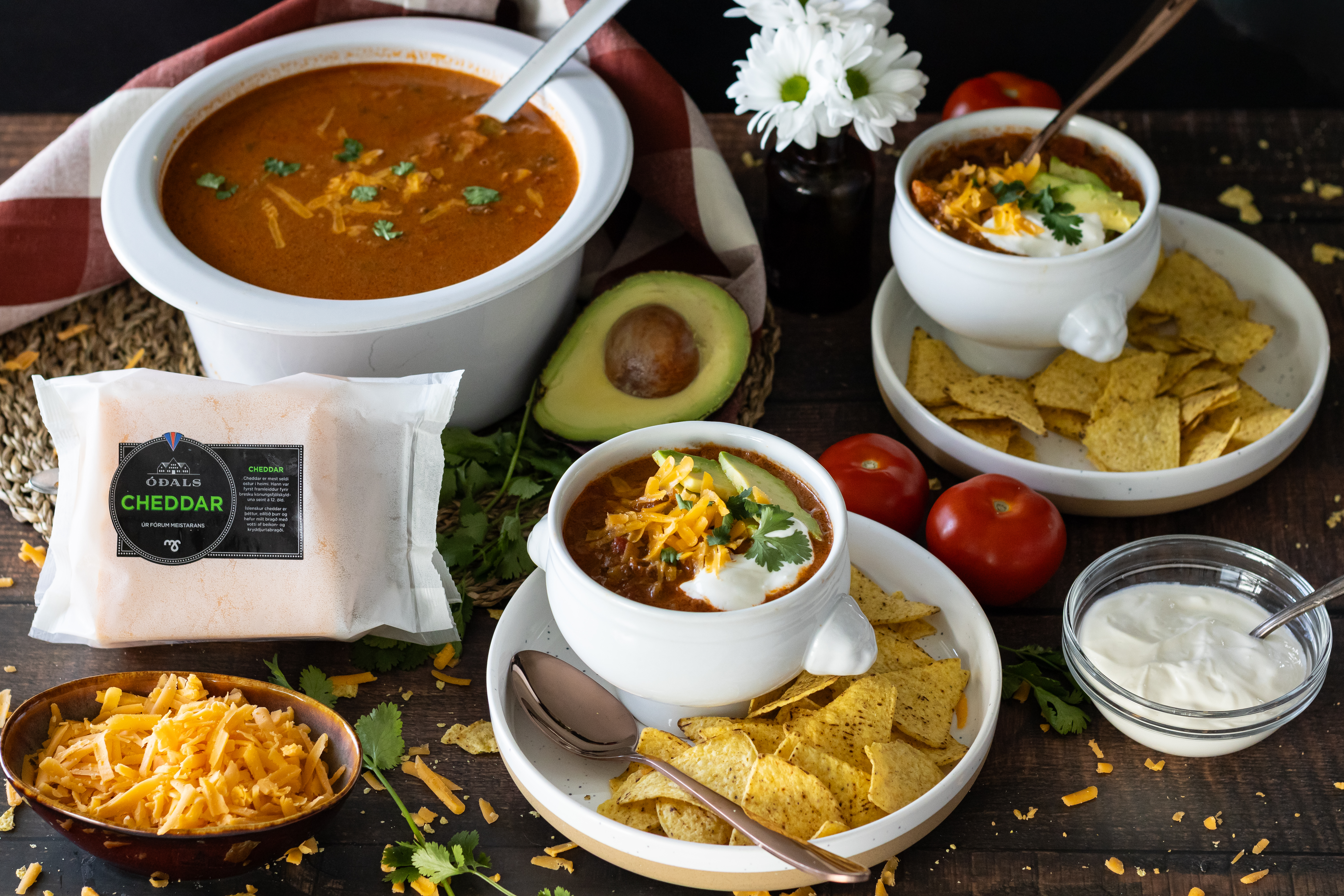 Cheddar er laglegur ostur sem kinkar kumpánlega kolli til bróður síns sem nefndur er eftir samnefndum bæ í Somerset á Englandi. Vinsældir Cheddar osts eru slíkar að í dag er hann mest seldi ostur í heimi. Óðals Cheddar er þéttur í sér, kornóttur, eilítið þurr í munni en mildur á bragðið með vott af beikon- og kryddjurtabragði. Í lokin laumast fersk, eilítið sýrð ávaxtasæta fram í munninum í lokin. Cheddar er mjög skemmtilegur matargerðarostur, sérstaklega í bakstur og á hamborgara en hann passar einnig á ostabakka með kjötmeti.