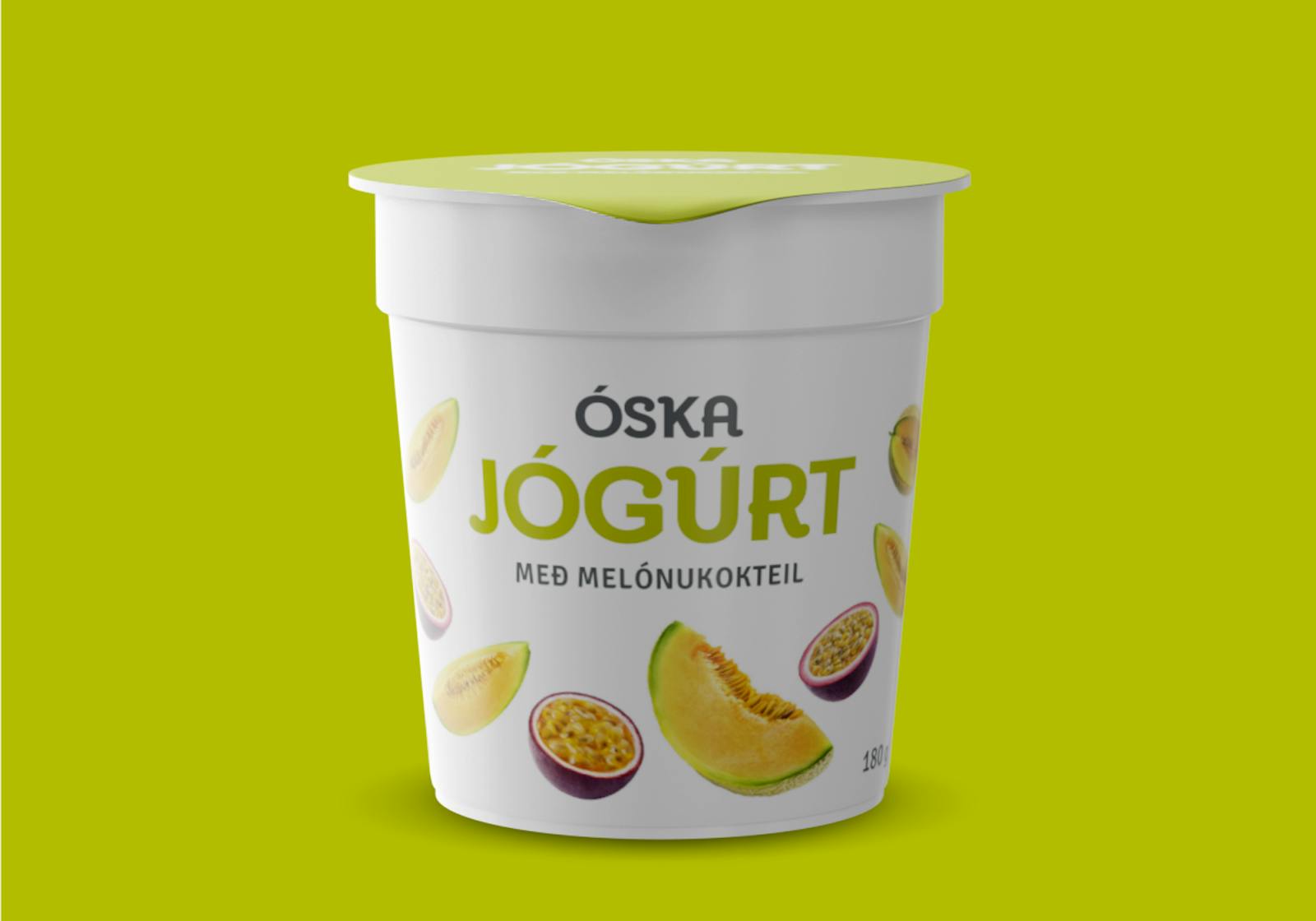 Óskajógúrt með melónukokteil er frískandi og góð þar sem ástaraldin og melónur í bland leika við bragðlaukana. Ljúffeng jógúrt sem kemur skemmtilega á óvart.